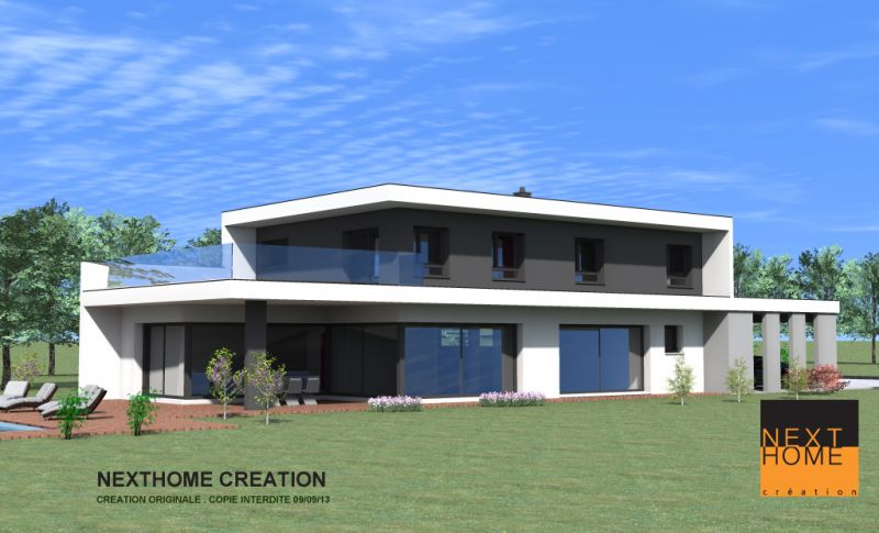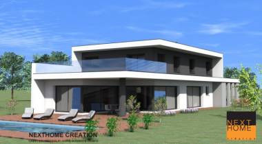 Nexthome Création, maître d'oeuvre et constructeur de maison d'architecte, vous propose cette villa à toit plat avec garage accolé de 188 m². Ce projet est situé dans le Haut Rhin 68 à Biederthal.