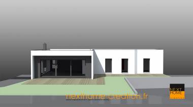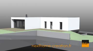 Maison moderne plain pied à toit plat avec garage au sous sol