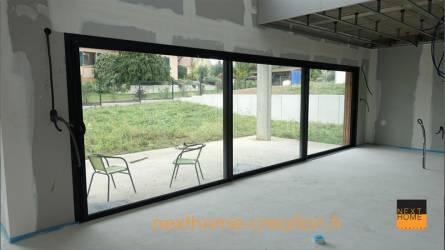 Nexthome Création, maître d'oeuvre et constructeur de maison contemporaines, vous présente cette maison à toit plat avec garage accolé de 151 m² située dans le Haut Rhin 68 à Uffheim.